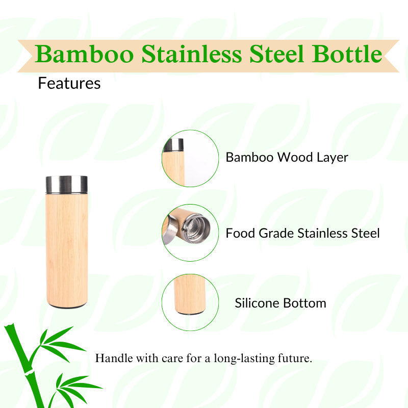 Insulated Bamboo Water Bottle – Double-Wall Stainless Steel & Office Desk Ready