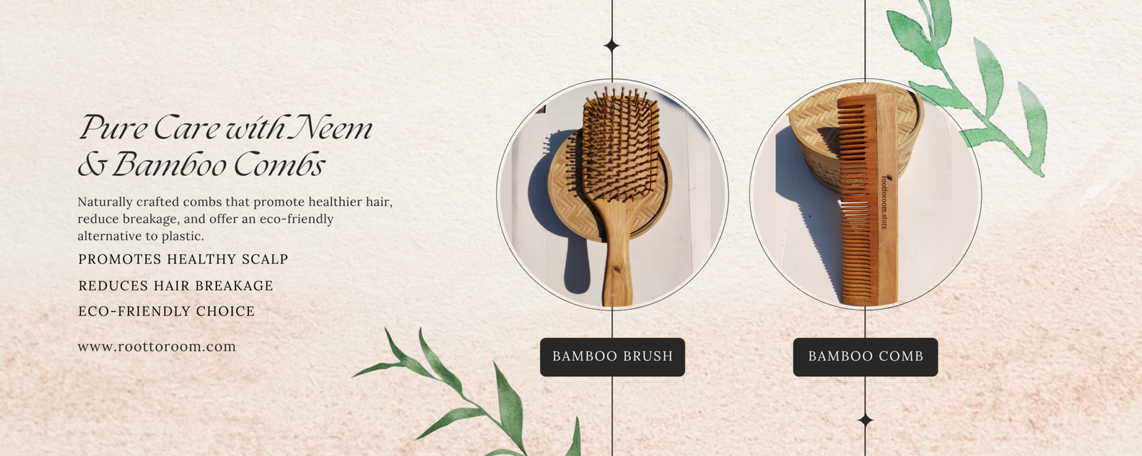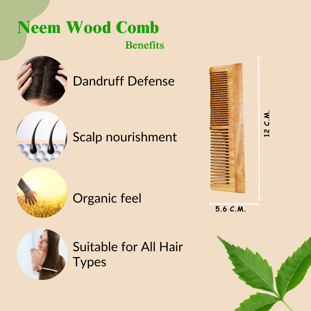 Root To Room Neem wood comb is a natural hair comb made from the wood of the neem tree (Azadirachta indica). It is widely used in traditional hair care because neem has natural antibacterial and antifungal properties. Unlike plastic combs, it is gentle on the scalp, reduces static, and helps maintain healthy hair.