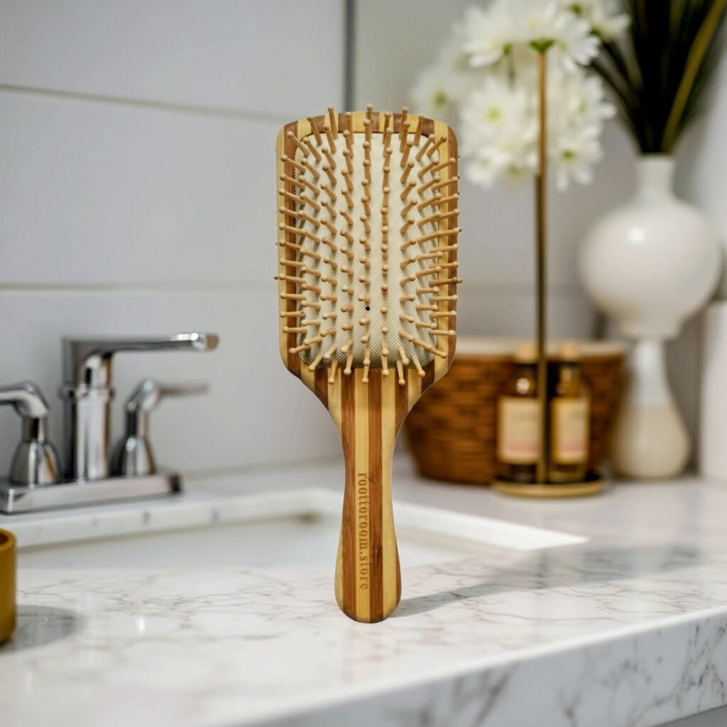 Natural Bamboo Paddle Hair Brush for Detangling & Scalp Massage